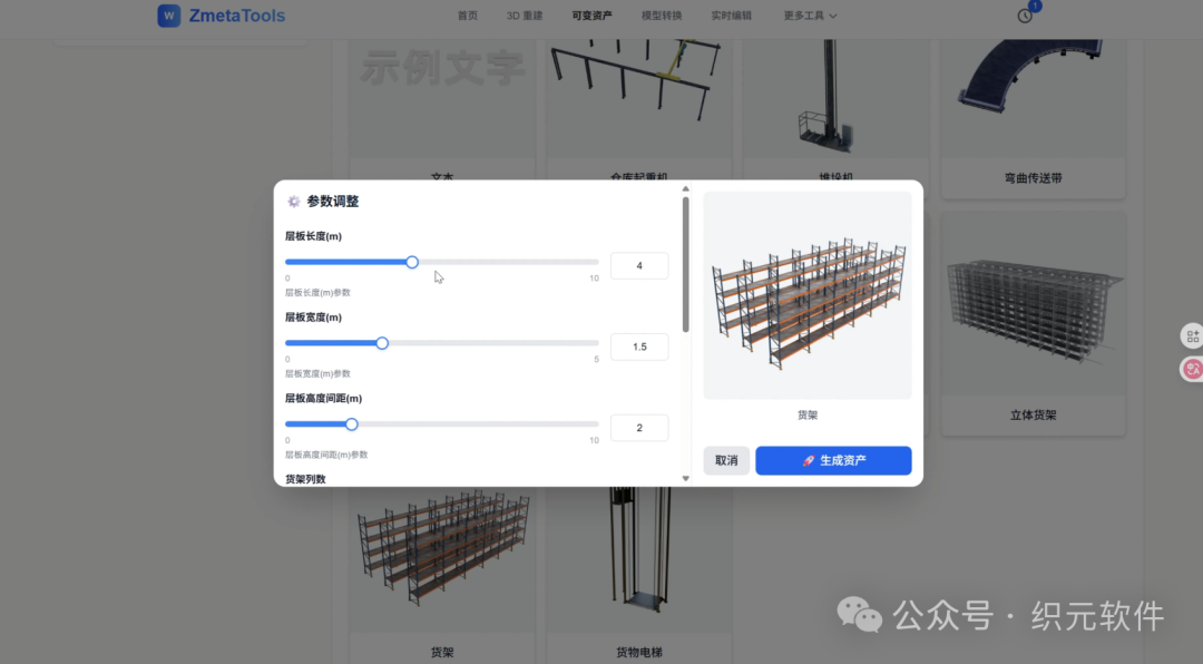 Zmetaboard中的可变资产模型工具,最大的亮点在于,无需任何建模基础,普通用户也能轻松上手。它允许用户根据实际需求,通过简单的拖拽自由调整模型的长、宽、高尺寸,精确设置模型数量及间距等关键变量。无论您面临的是狭小空间的高效利用,还是大规模仓储,这款工具都能提供量身定制的解决方案。
